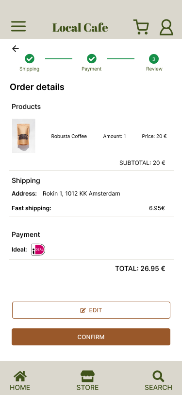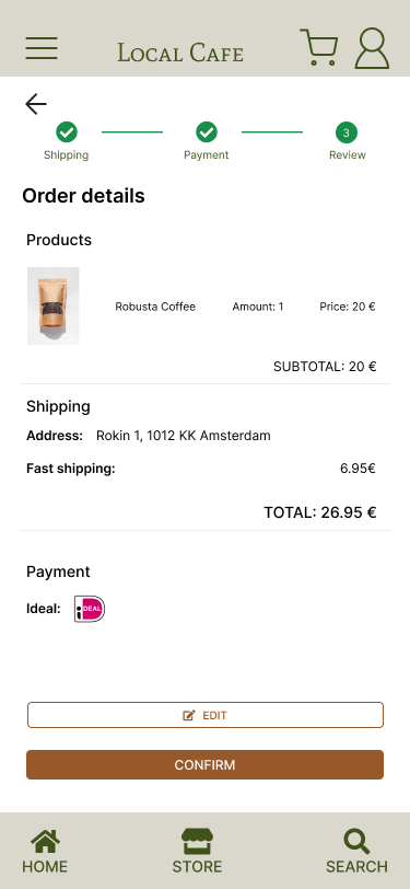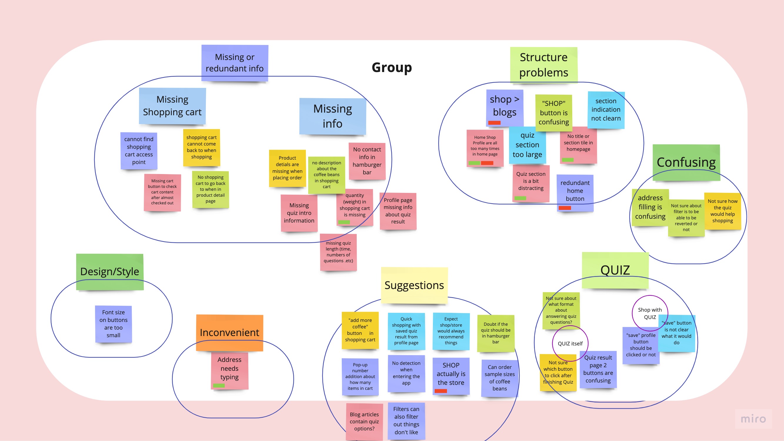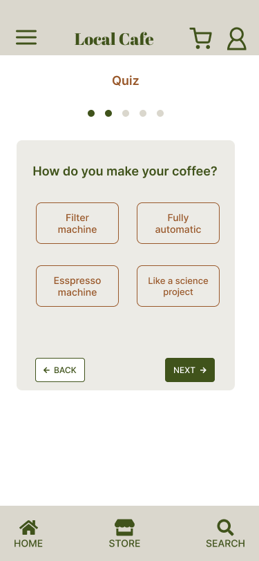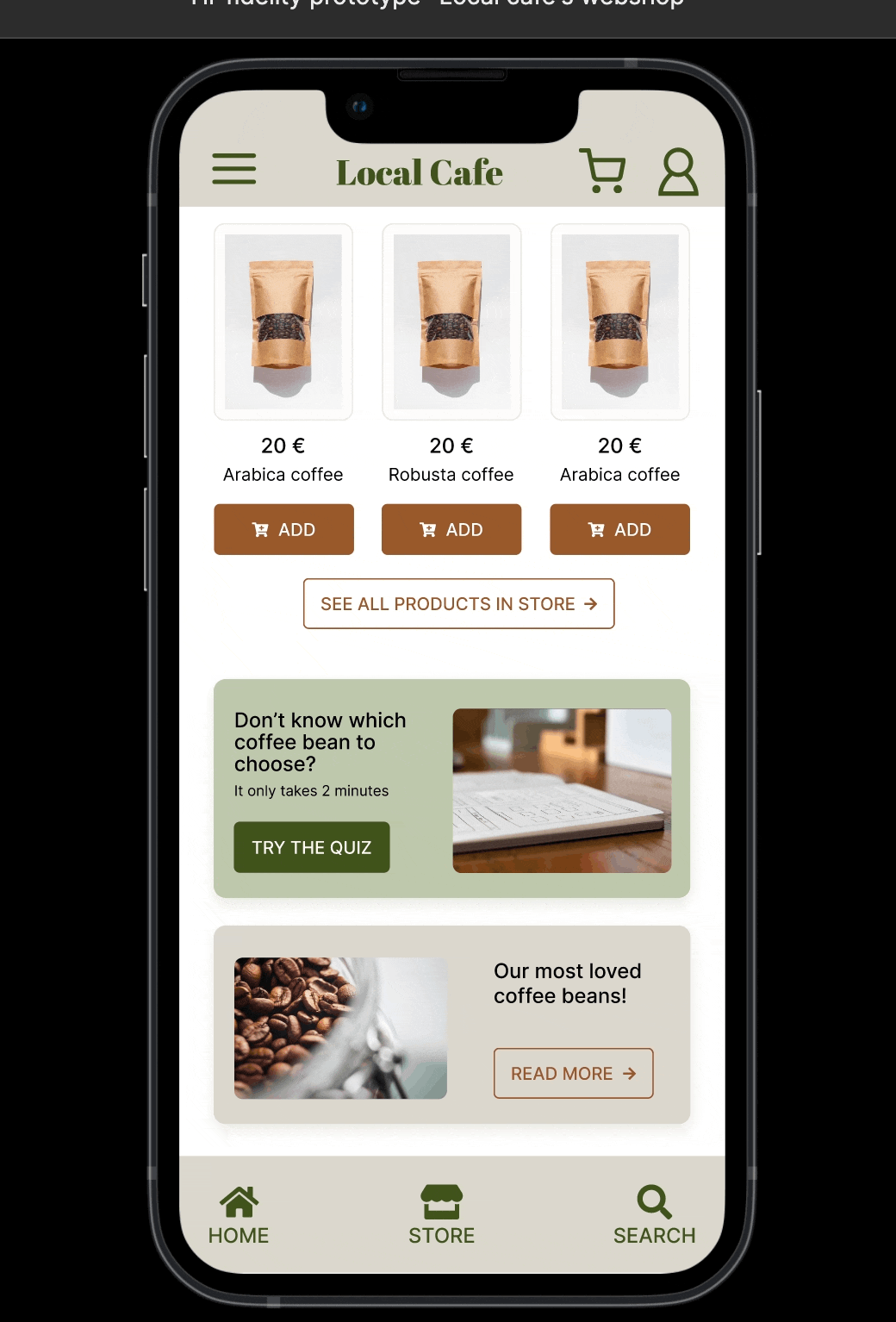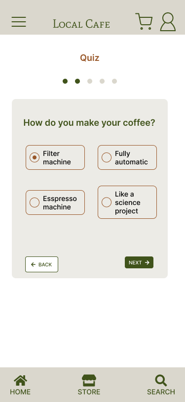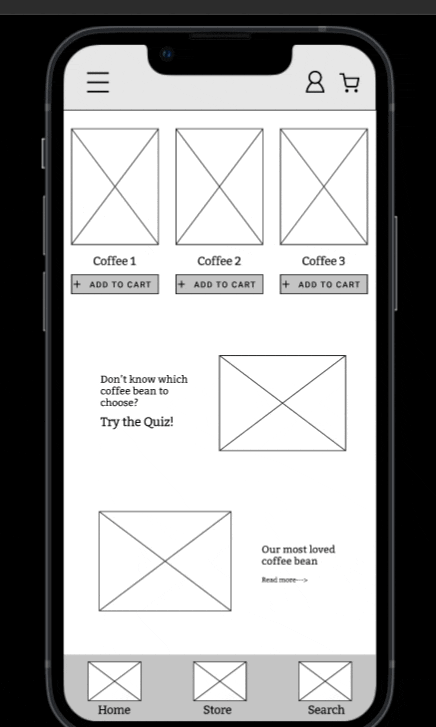 A high-fidelity webshop prototype with a full mock-up journey of placing order were designed. A Quiz was there to help users identify their coffee flavor preferences. At the same time, coffee bean recommendations were presented, which were available in the webshop.