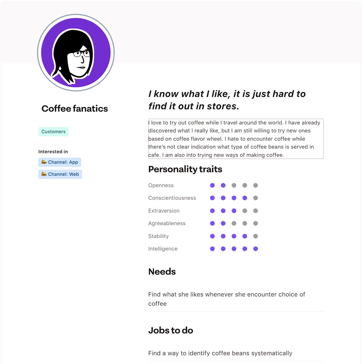 Our primary targeted user group were identified by client. Ideally, they were those who drinks coffee regularly but are curious to try out new coffee beans. We hand-picked 6 participants to do user interviews.