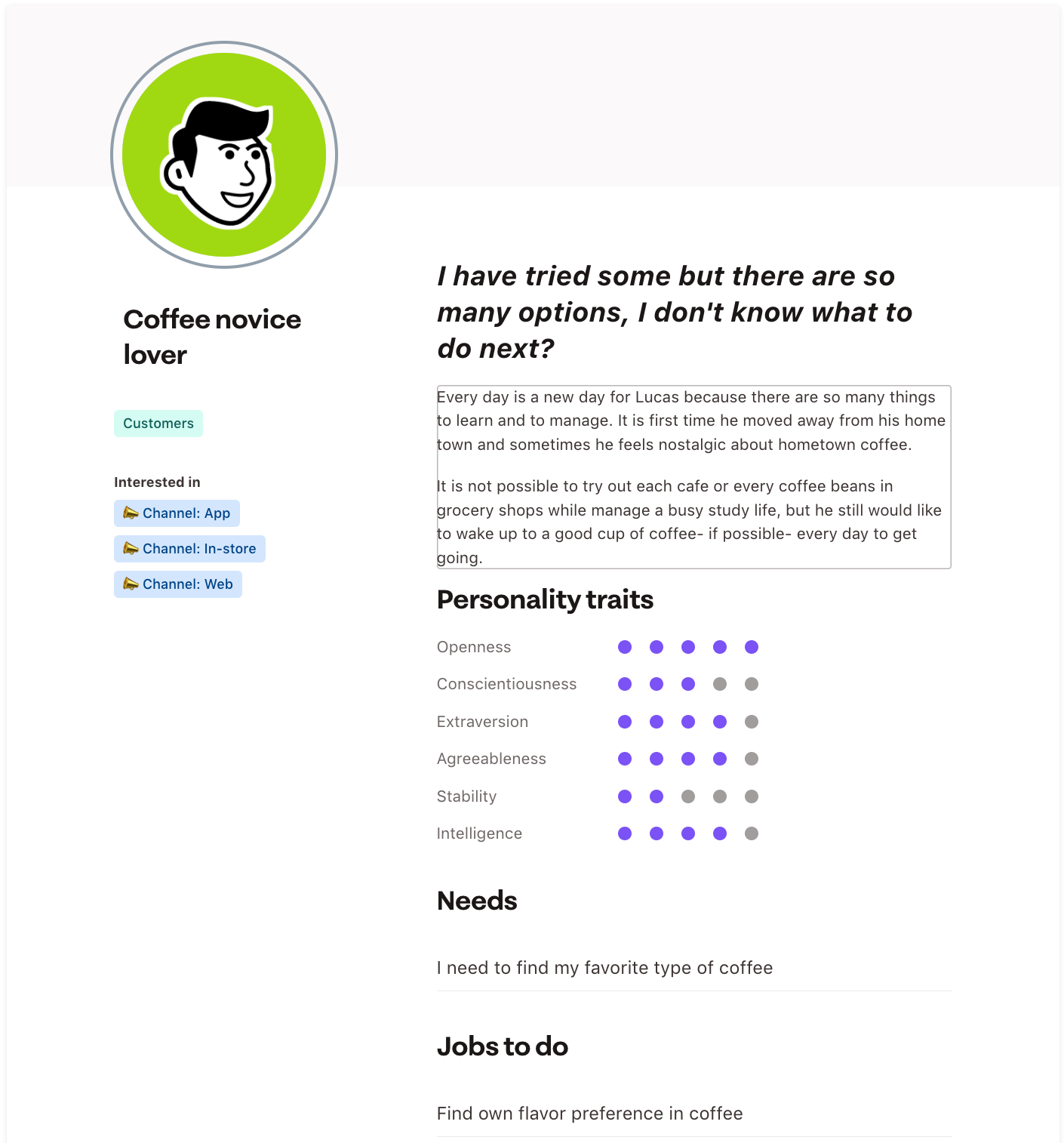 In this user research, we had discovered that users were often at loss when they face multiple choices of coffee beans in a webshop; and it was hard to put their preference towards coffee beans which were in the webshop.